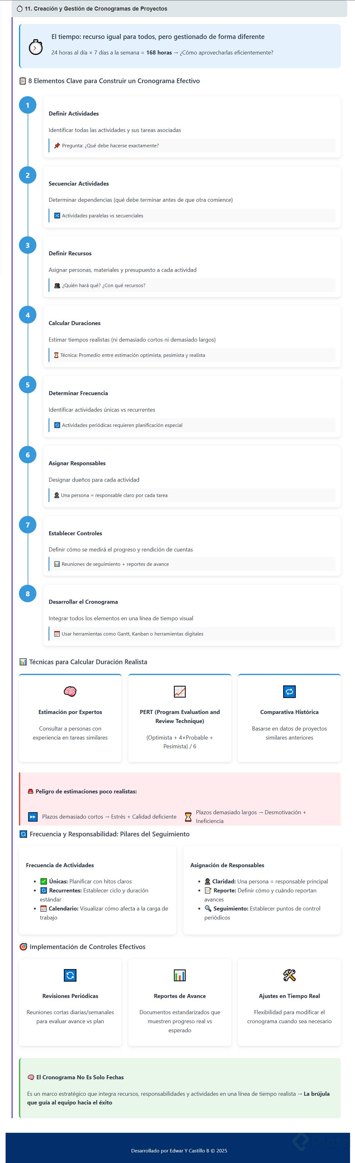 En la gestión de proyectos, usar el tiempo efectivamente puede ser la clave entre el éxito y el fracaso. Cada uno de nosotros tiene las mismas 24 horas al día y 7 días a la semana, pero solo mediante la adecuada planificación y organización podemos hacer que cada segundo cuente. A medida que desglosamos el proceso, descubrirás cómo un cronograma no solo es una hoja de ruta, sino una herramienta vital para gestionar recursos, actividades y responsabilidades.