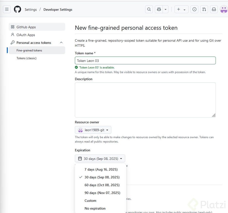 - Tokens Clásicos: Permiten seleccionar permisos básicos y pueden tener duración indefinida (aunque no es recomendable).
