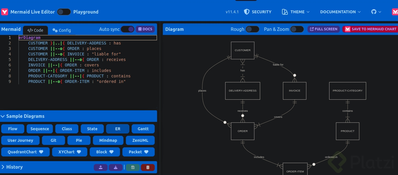 Para poder jugar más con el código mermaid en tus documentos, lo mejor es visitar el visualizador de diagramas de mermaid aquí.