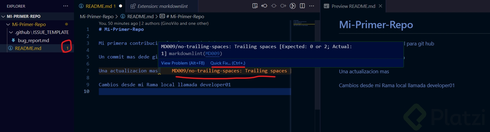 Dentro de VS Code puedes previsualizar todos los documentos markdown antes de colocarlos en un control de versiones, solo es necesario que te ubiques en la esquina superior derecha para encontrar un ícono con una lupa y que te permite previsualizar el documento.
