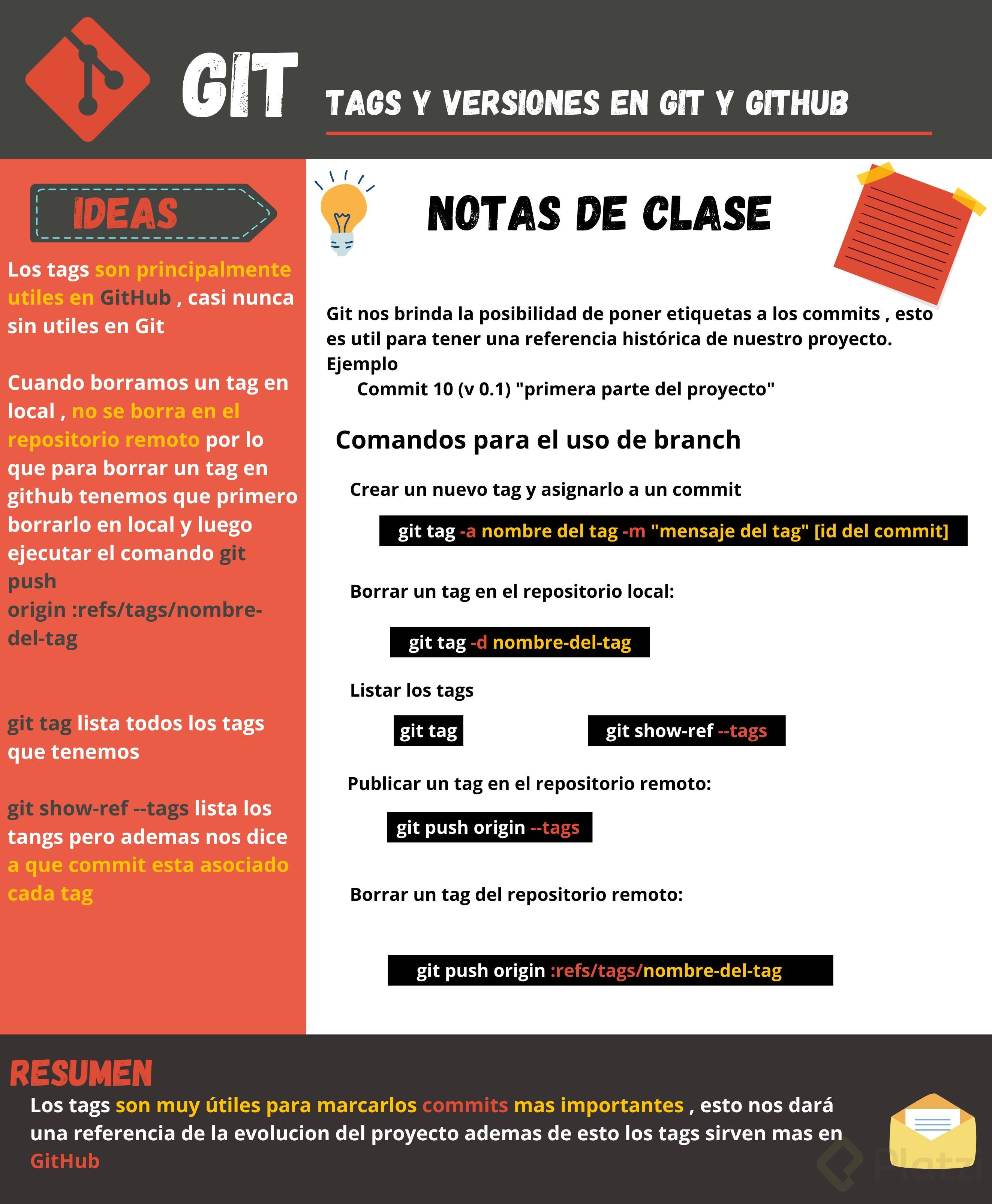 git tag -d v1.0para remover el tag sin afectar el historial ni los archivos. Esto es conveniente si el nombre del tag necesita ser corregido o ajustado.