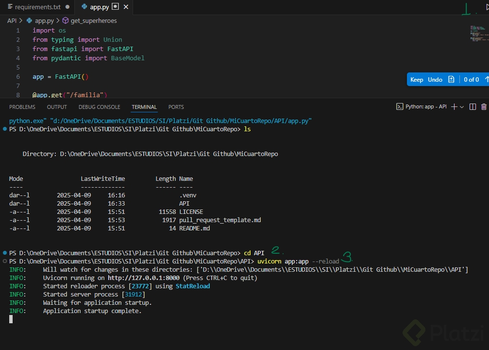 uvicornpara lanzar tu servidor y verificar que todo funcione correctamente.