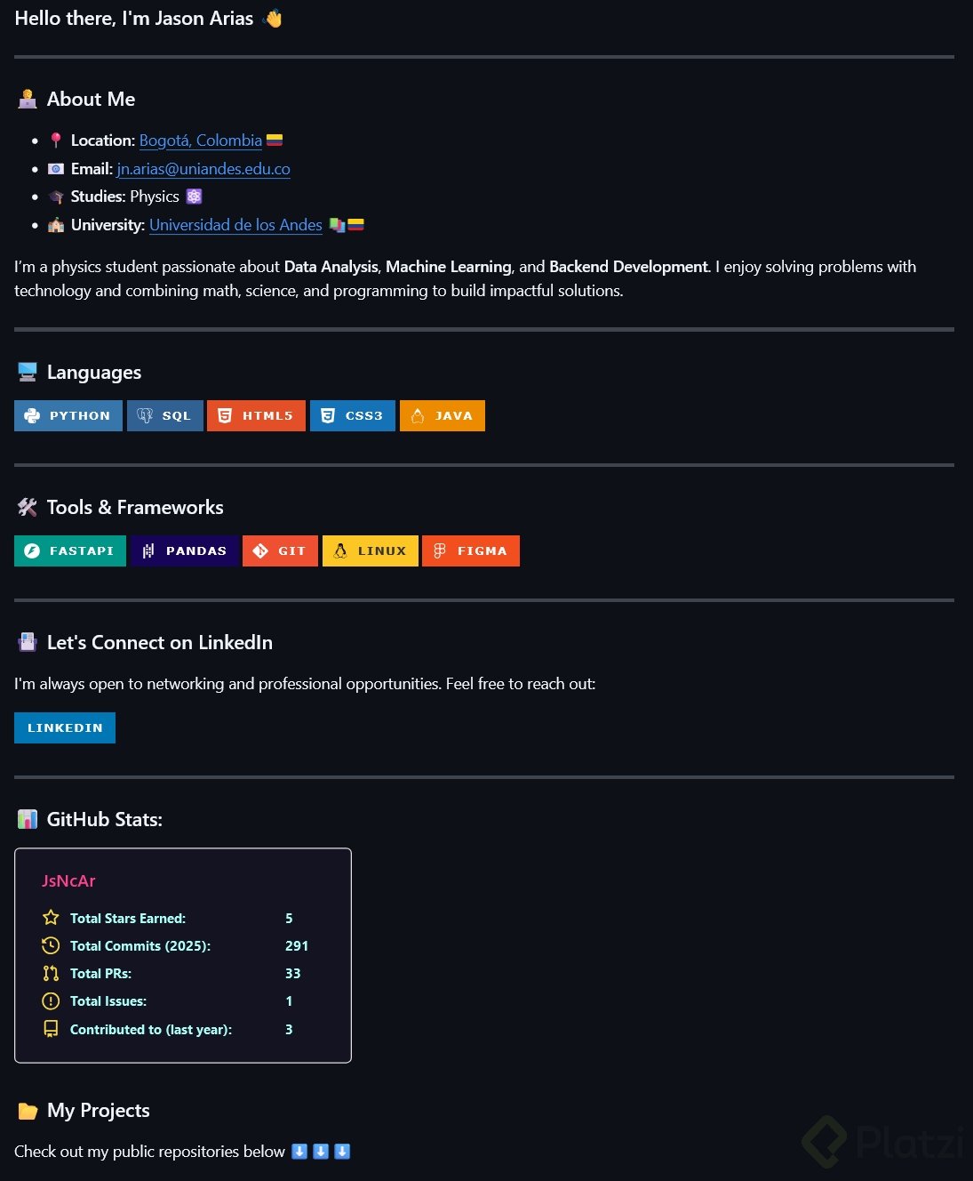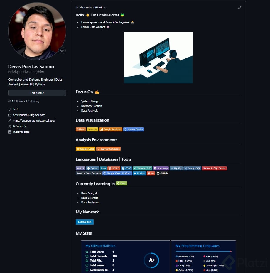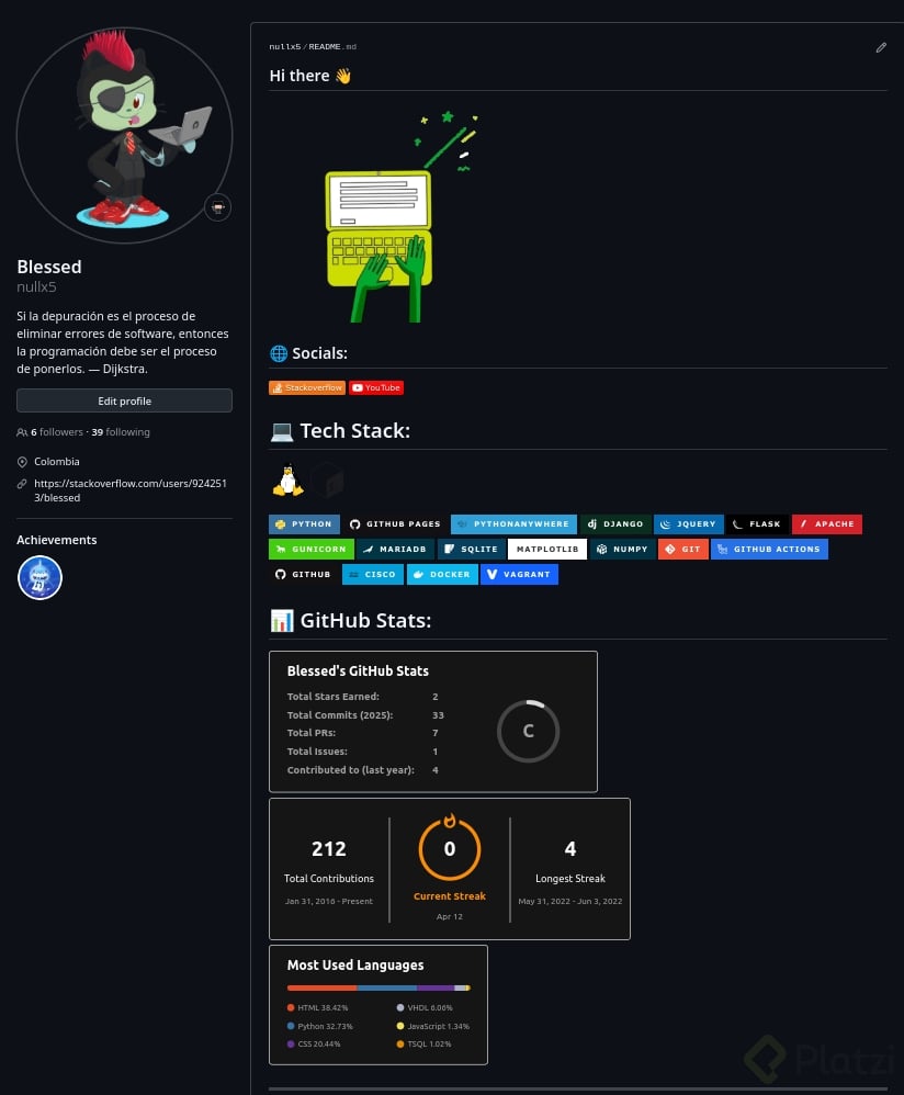 README.mden modo “RAW” para ver el código en Markdown. - Explora y adapta: La práctica es clave; revisa diferentes perfiles para encontrar ideas y técnicas que puedas adaptar.
