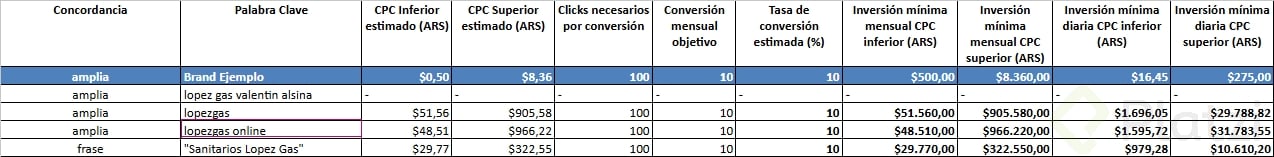 La estimación del presupuesto se hace principalmente considerando dos factores claves: costos por clic y tasas de conversión estimadas. Utiliza el planificador de palabras clave de Google para identificar: