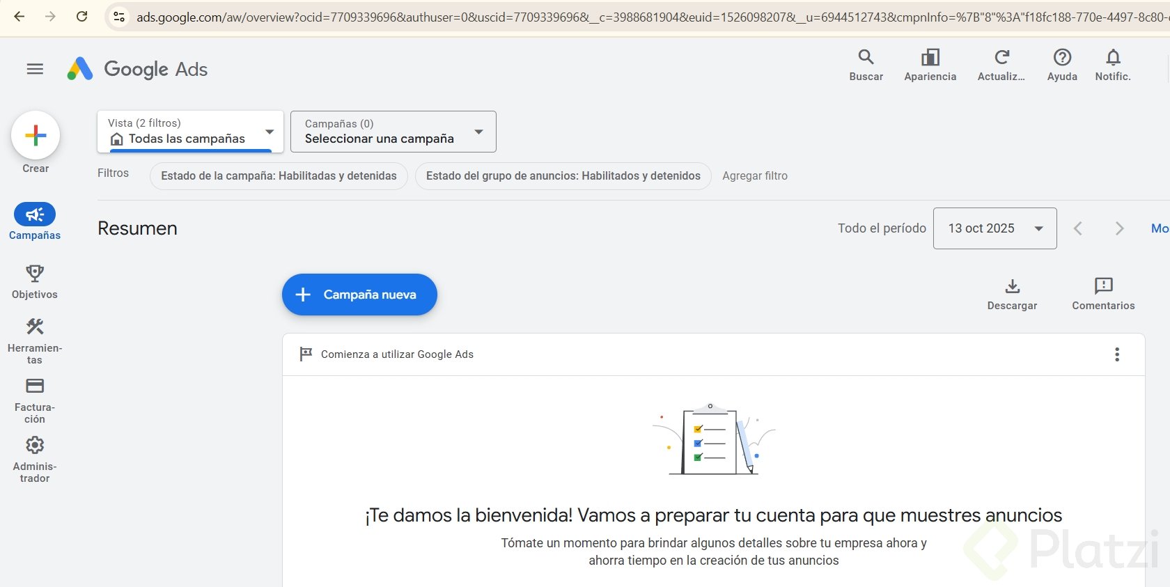 Una vez completado este paso, tu cuenta estará configurada para comenzar a lanzar campañas efectivas; recuerda que, si trabajas en equipo, deberás otorgar permisos a colaboradores, lo cual aprenderás en la siguiente clase del curso.