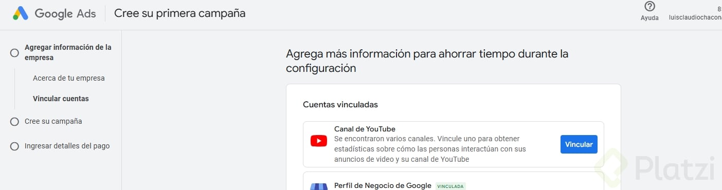 Lo primero es acceder al enlace oficial de Google Ads y asegurarte de seleccionar el perfil adecuado de Google antes de continuar. Esta elección es clave porque el perfil seleccionado será el asociado a tu cuenta publicitaria. Al iniciar la creación, la plataforma es intuitiva y te guiará en la propuesta inicial rápida. Aunque inicialmente muestra la opción de crear campañas, es recomendable omitir este paso inicialmente para evitar confusiones; las definiciones específicas de campañas se explican en clases posteriores.