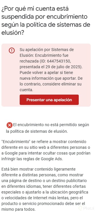 Además, pide aclarar quién estará pagando por los anuncios, lo cual usualmente, como en el ejemplo proporcionado, directamente es Google Ads.