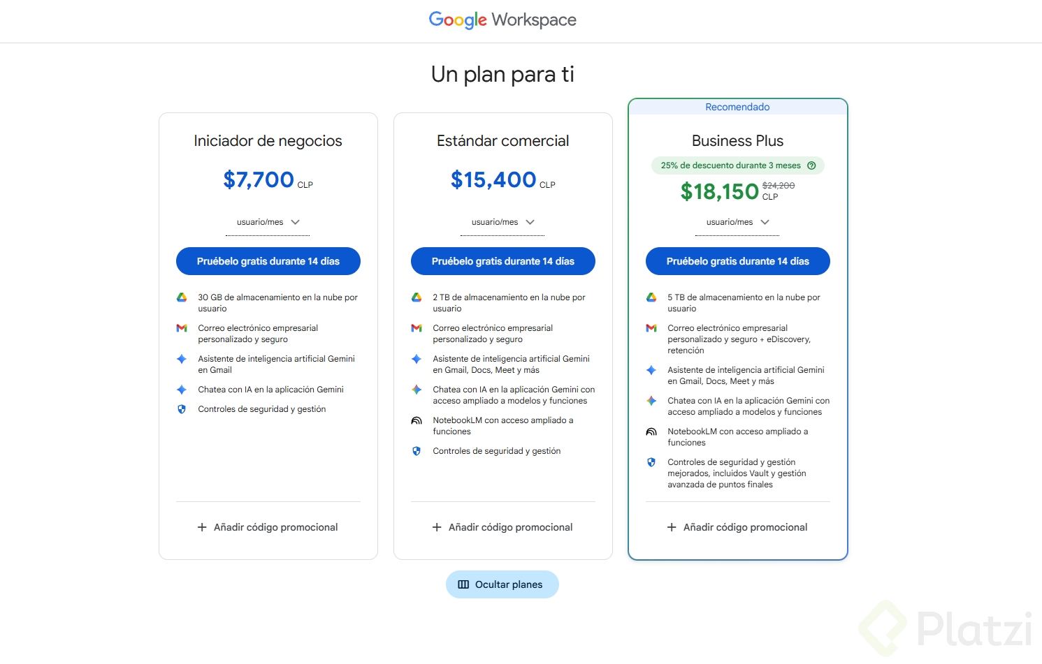 - [01:23] Google Workspace tiene costo desde el primer usuario debido a servicios adicionales