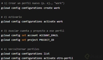 - [6:08] gcloud config list: Ver configuraciones de la CLI