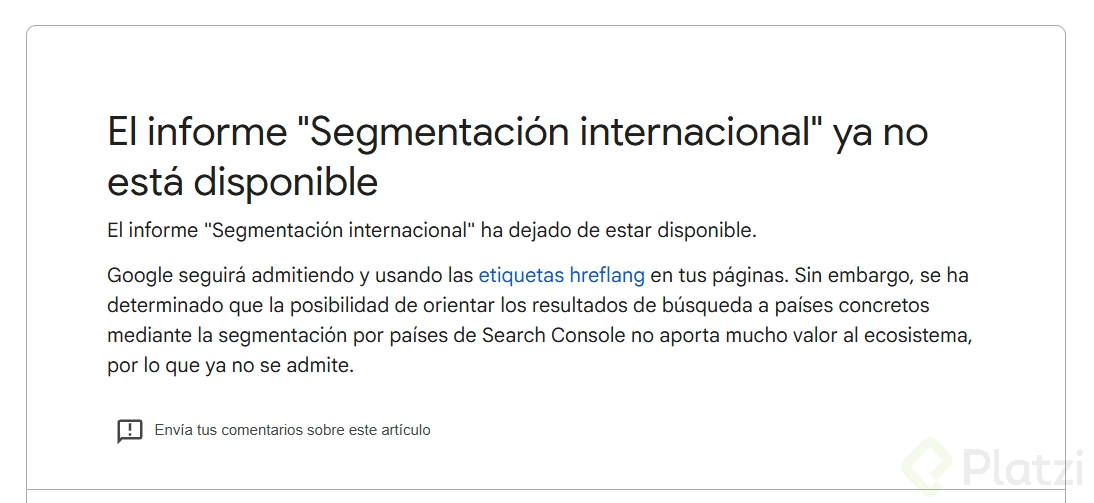 Es importante no confundir esta característica con la segmentación específica por país que vimos anteriormente. Cada una tiene su propósito específico en estrategia SEO.