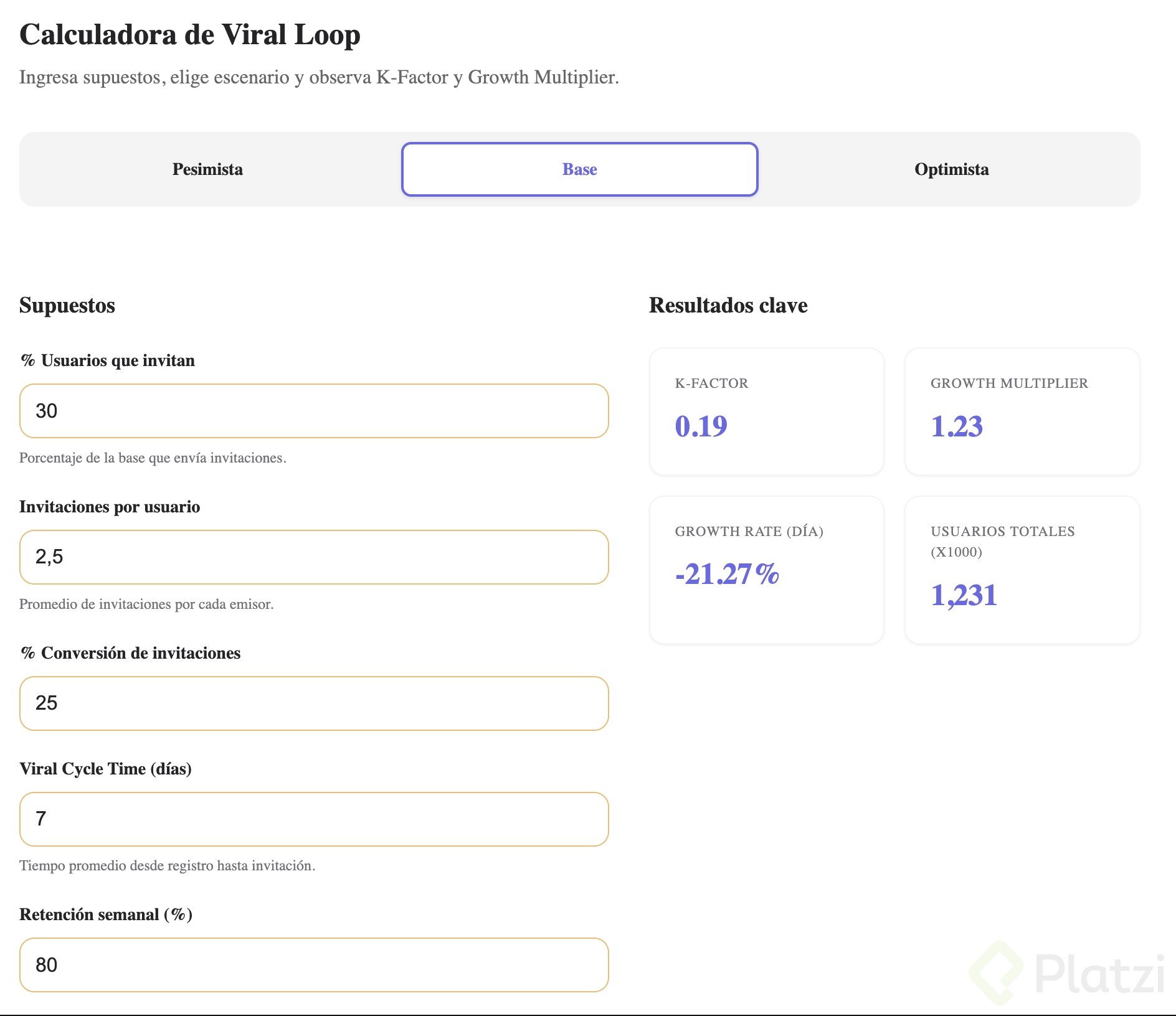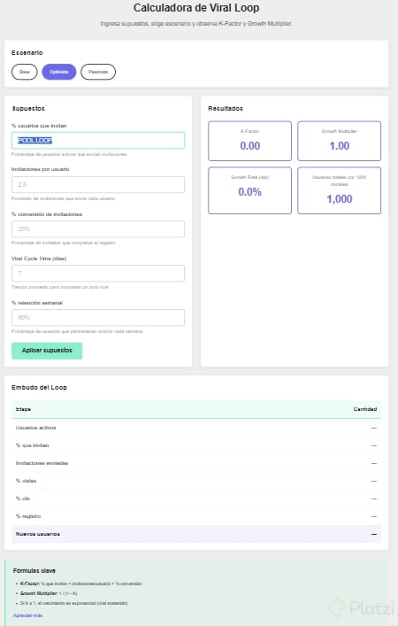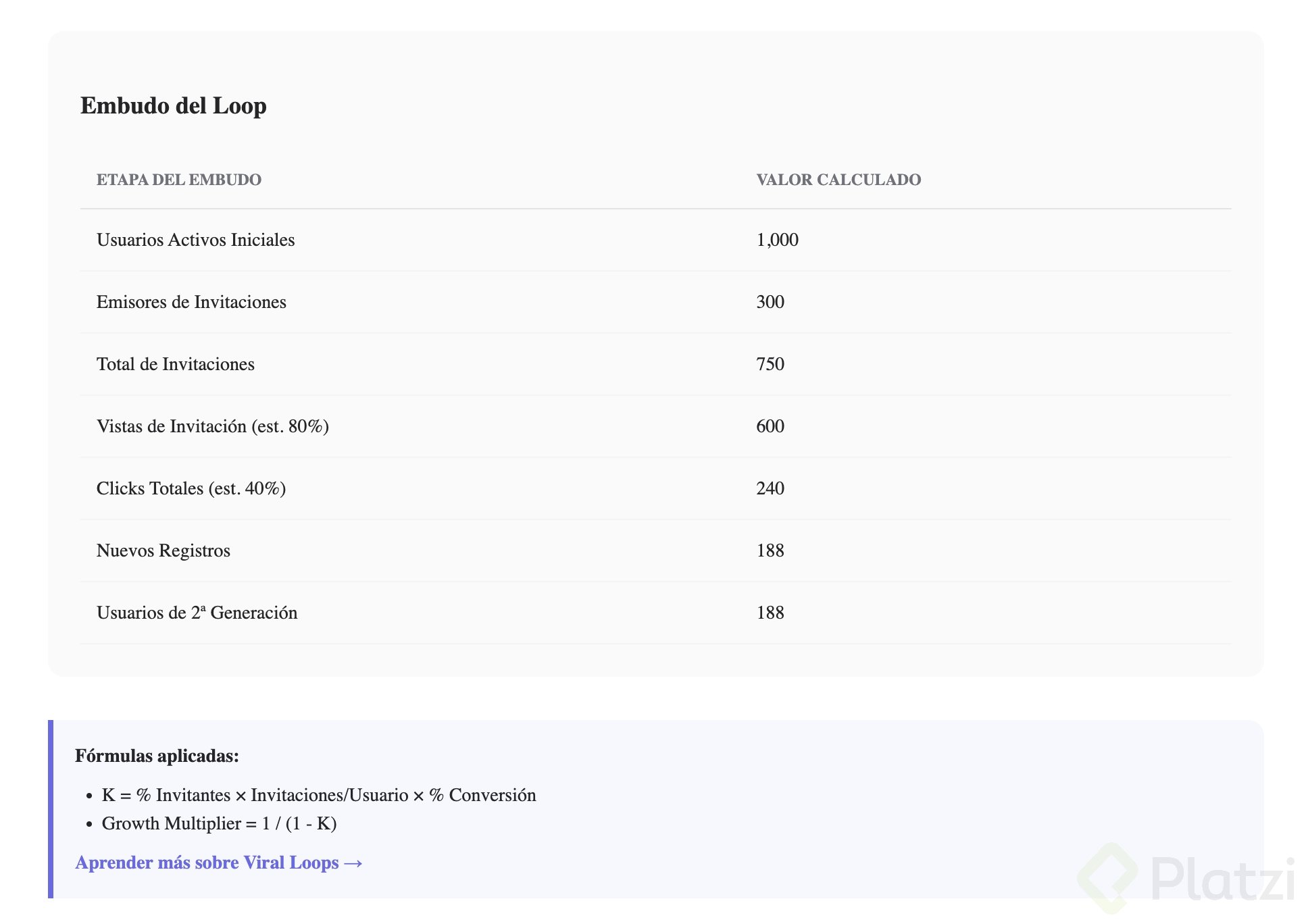 - Lógica y cálculos: detallar fórmulas del viral loop; revisarlas a conciencia.