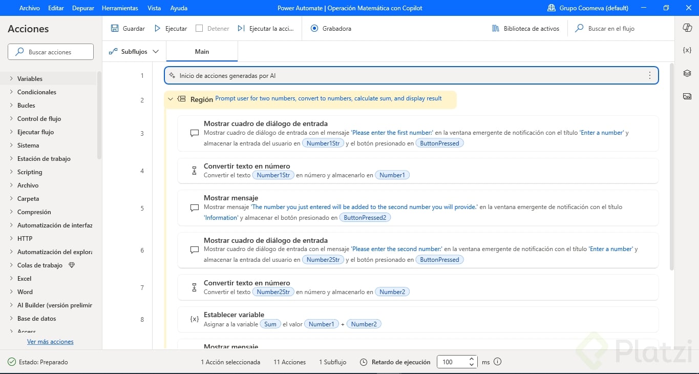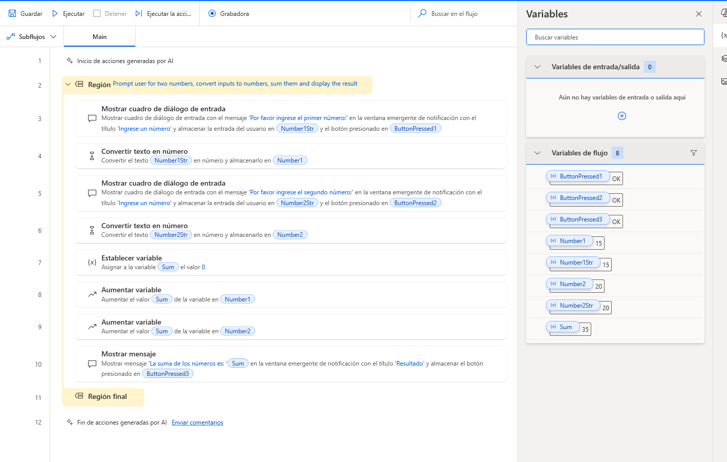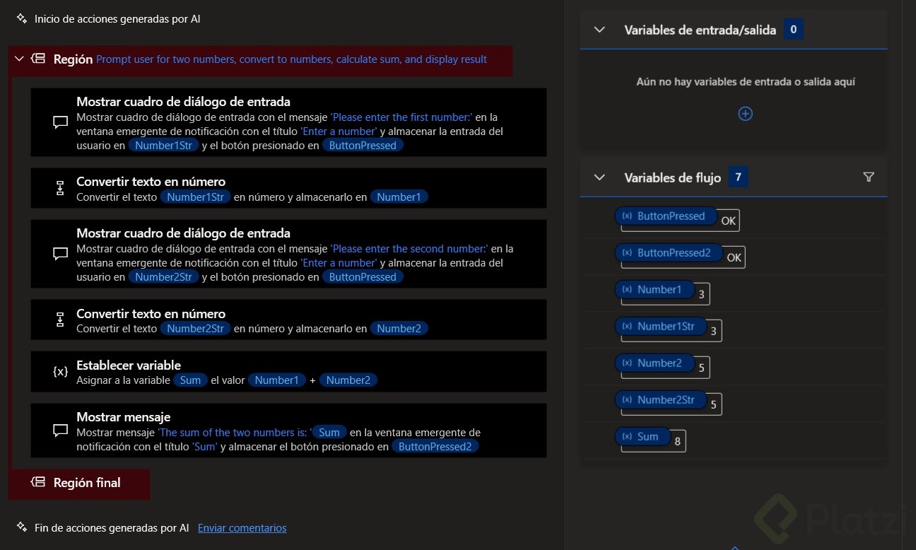 Puedes utilizar Copilot para crear desde operaciones matemáticas simples hasta flujos de trabajo complejos, simplemente describiendo lo que necesitas en lenguaje cotidiano.