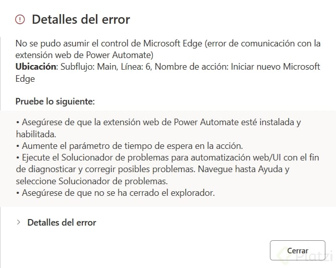 Un error frecuente es utilizar la URL incorrecta. En nuestro ejemplo, inicialmente se usó la URL del formulario en lugar de la URL del archivo Excel, lo que causó que el flujo abriera Google Forms en lugar del archivo de Excel.
