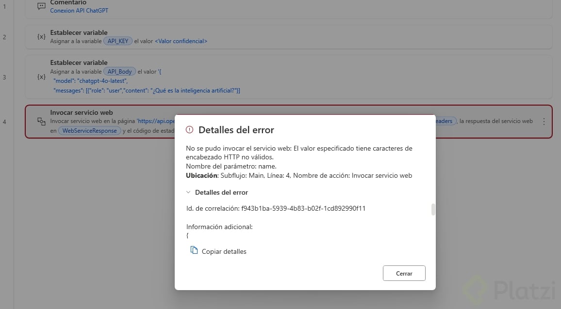 - Valor: El JSON que define nuestra solicitud a OpenAI