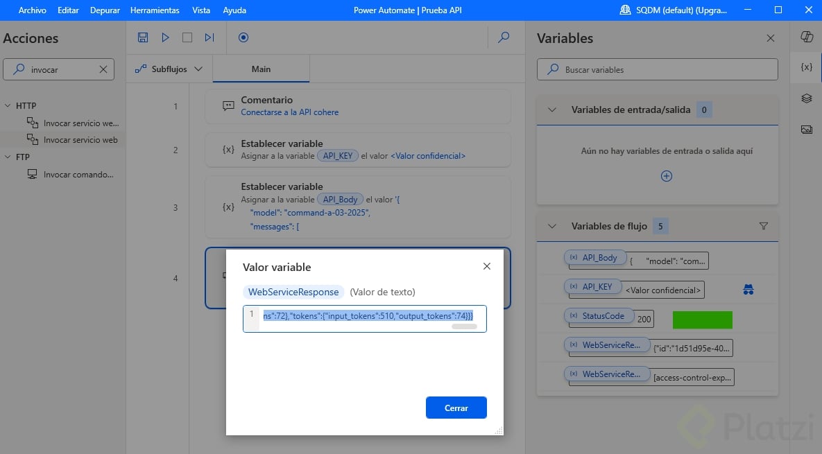 Por ejemplo, si quisiéramos extraer solo el texto de la respuesta, podríamos utilizar expresiones para navegar por el JSON y obtener el contenido específico que necesitamos.