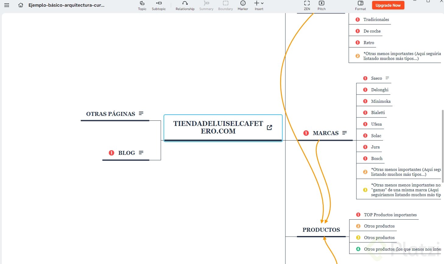 Esta visualización jerárquica ayuda a comunicar de manera clara los objetivos y estructura del sitio, y permite abrir y modificar el mapa directamente en la plataforma visual.