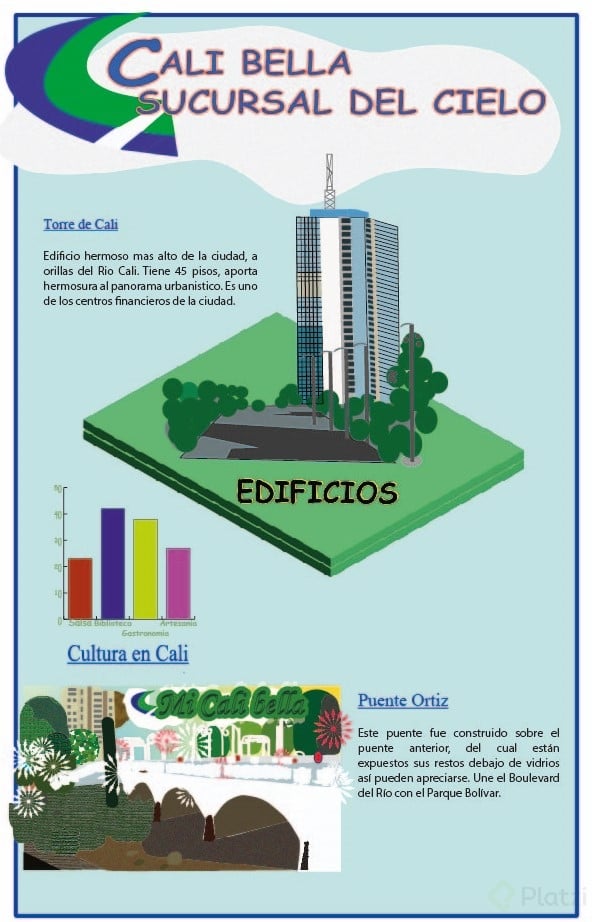 Crea una infografía sobre algún tema de tu ciudad que quieras destacar: puede ser el aspecto cultural, deportivo, musical o artístico. Usa la perspectiva isométrica para crear los elementos de la infografía e incluye algún tipo de gráfico estadístico: de barras, tipo torta o gráfico lineal. El tamaño debe estar optimizado para lectura en pantallas.
