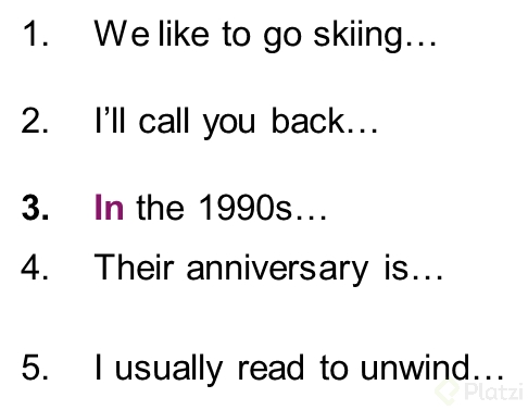 La precisión en el tiempo se logra cuando hablamos de años y décadas con la preposición in. Algunos ejemplos útiles son: