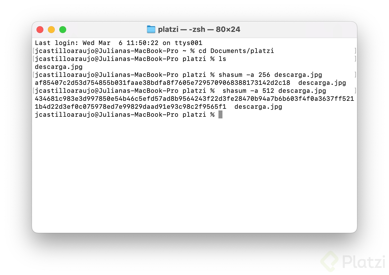 Ejecutar el comando de hash: Usa el comando adecuado en tu terminal. Por ejemplo, en Mac y Linux, podrías usar: