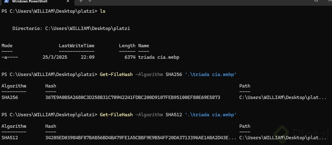 sha256sum nombre_del_archivoPara obtener el hash SHA-512, cambia el comando a: