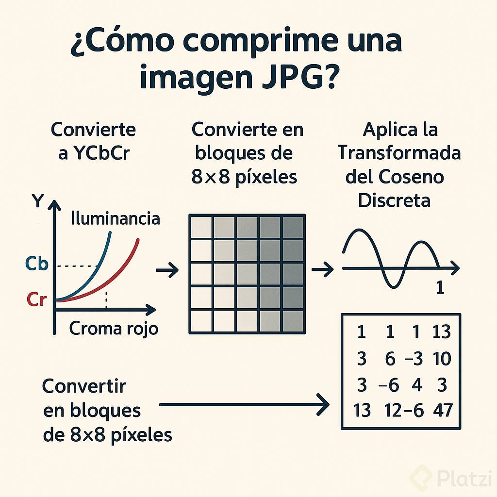 El proceso de compresión JPG sigue varios pasos fundamentales: