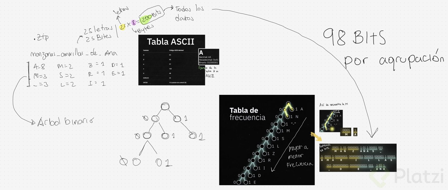 Esta frase contiene 25 caracteres (incluyendo espacios), lo que normalmente ocuparía 25 bytes o 200 bits en una computadora (cada byte son 8 bits). Sin embargo, mediante técnicas de compresión, podemos reducir significativamente este tamaño.