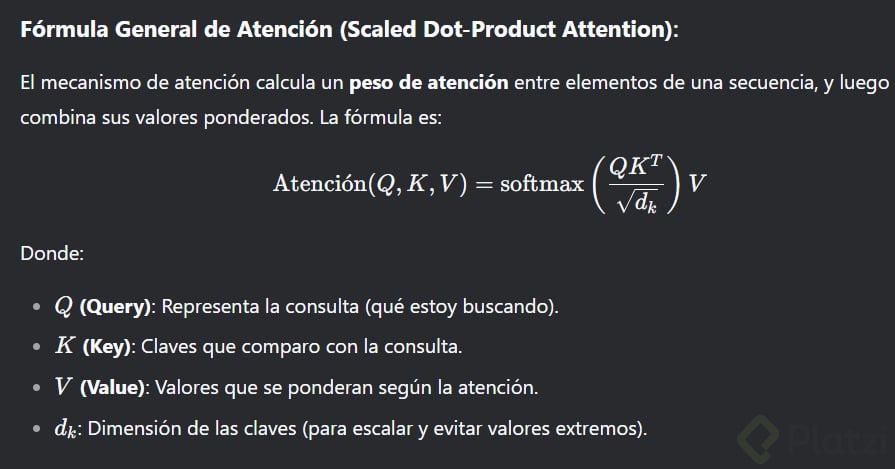 Este mecanismo de atención es lo que permite a los modelos capturar dependencias a larga distancia en el texto, superando las limitaciones de modelos anteriores.