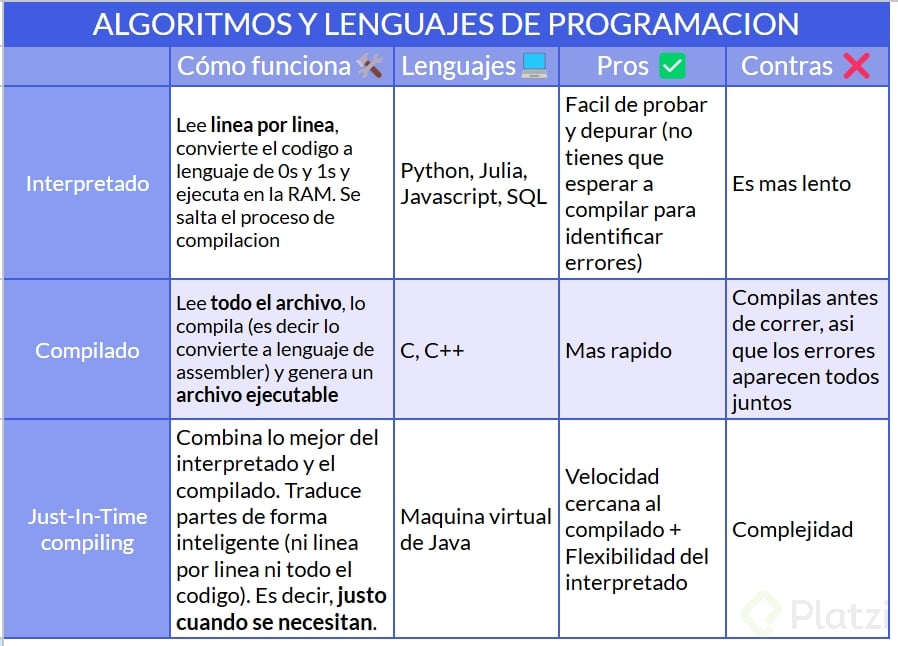 - Lenguaje de programación: Es el medio a través del cual expresamos los algoritmos para que las computadoras puedan entenderlos.