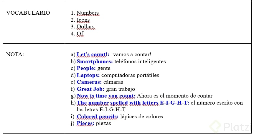 Contar objetos es una excelente manera de fortalecer tus habilidades auditivas y prácticas en inglés. Aquí te proponemos un breve ejercicio: