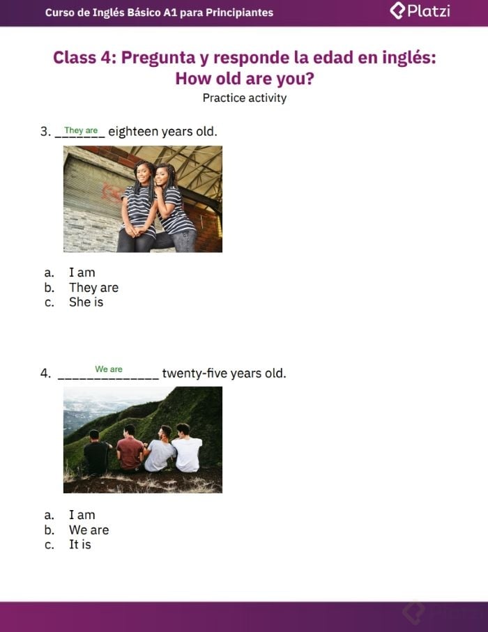 They ___ eight years old. (am? is? are?) Respuesta: They are eight years old.