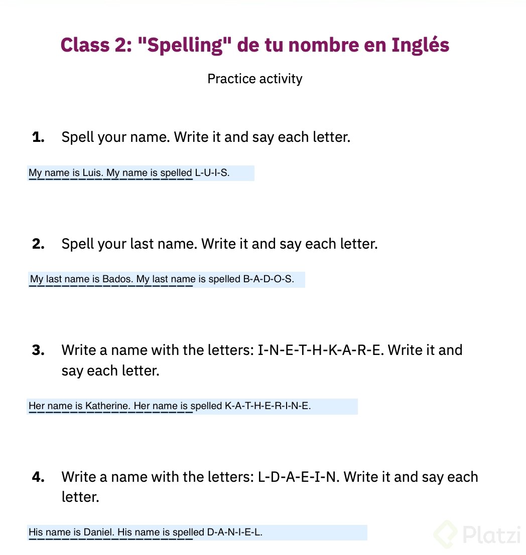A continuación, te mostramos cómo algunas personas deletrean sus nombres, proporcionando ejemplos reales para que practiques: