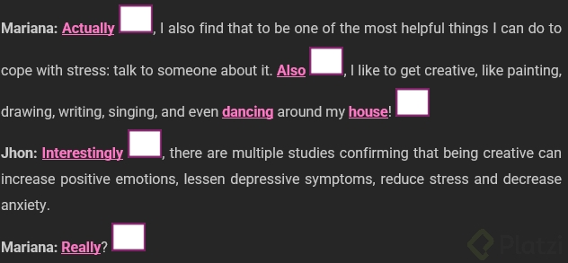 As noted in the conversation, multiple studies confirm that being creative can increase positive emotions, lessen depressive symptoms, reduce stress, and decrease anxiety [5:08]. Practicing these intonation patterns while discussing meaningful topics like well-being makes the learning experience far more memorable.