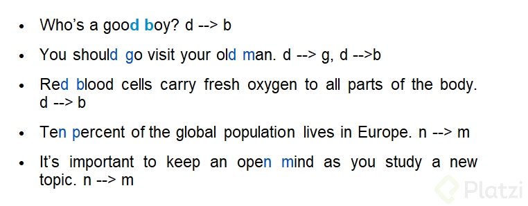 Al igual que con /t/, el sonido /d/ se modifica a /b/ en presencia de /p/, /b/ o /m/, permitiendo un flujo más natural del habla.