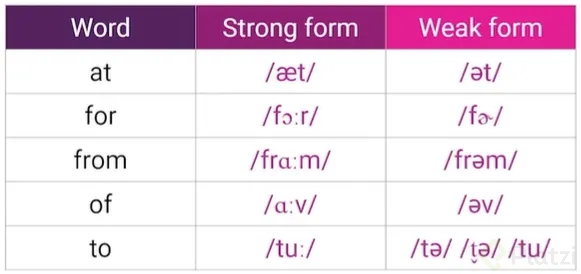 Formas fuertes: Son cuando una palabra recibe énfasis dentro de una oración. Estas suelen ser las palabras de contenido como sustantivos, verbos principales, adjetivos, adverbios, auxiliares negativos y las palabras interrogativas (WH words).