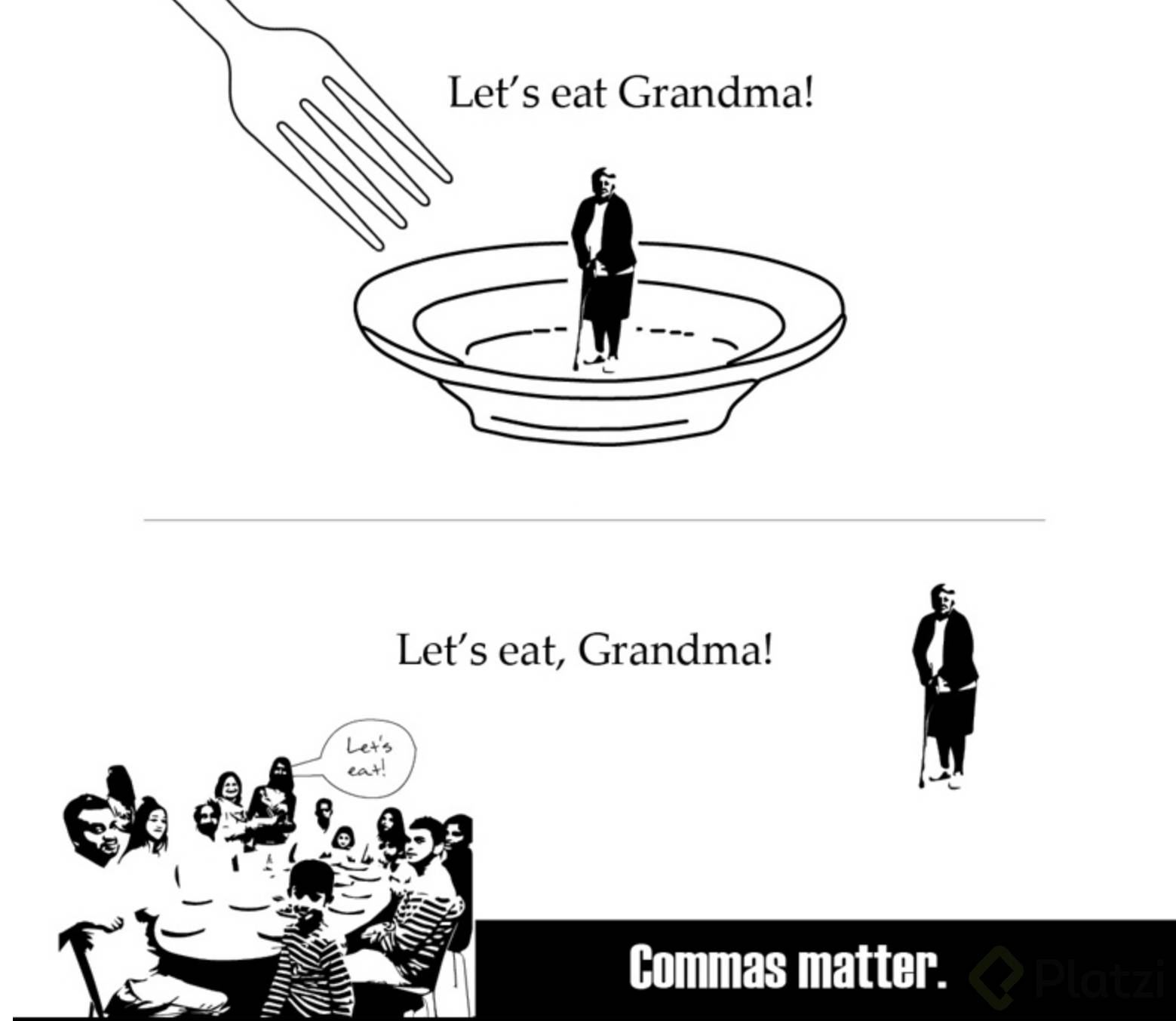 | , | Comma | Shows separation of ideas, lists of elements, and sentences. | I want to eat pizza, hotdogs, and ice cream. |