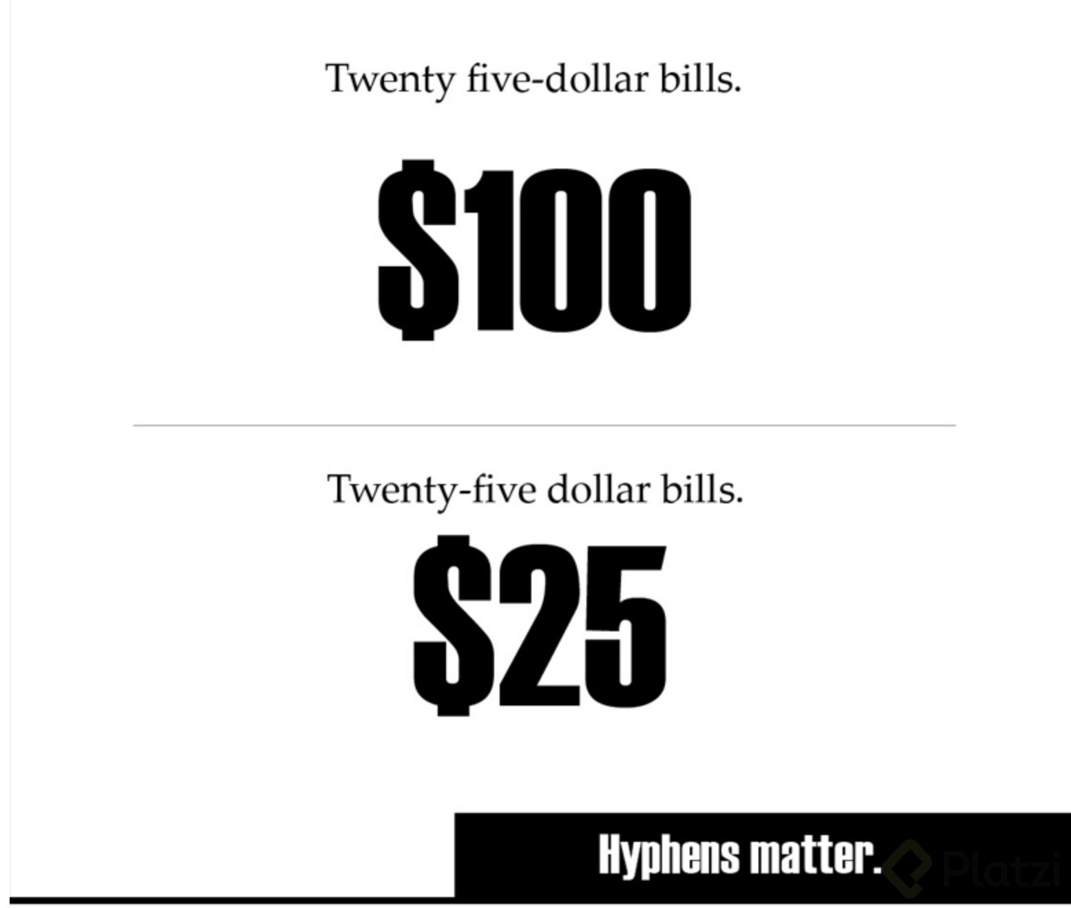 | - | Hyphen | Cannot be separated by spaces. | There are twenty-two students here. |