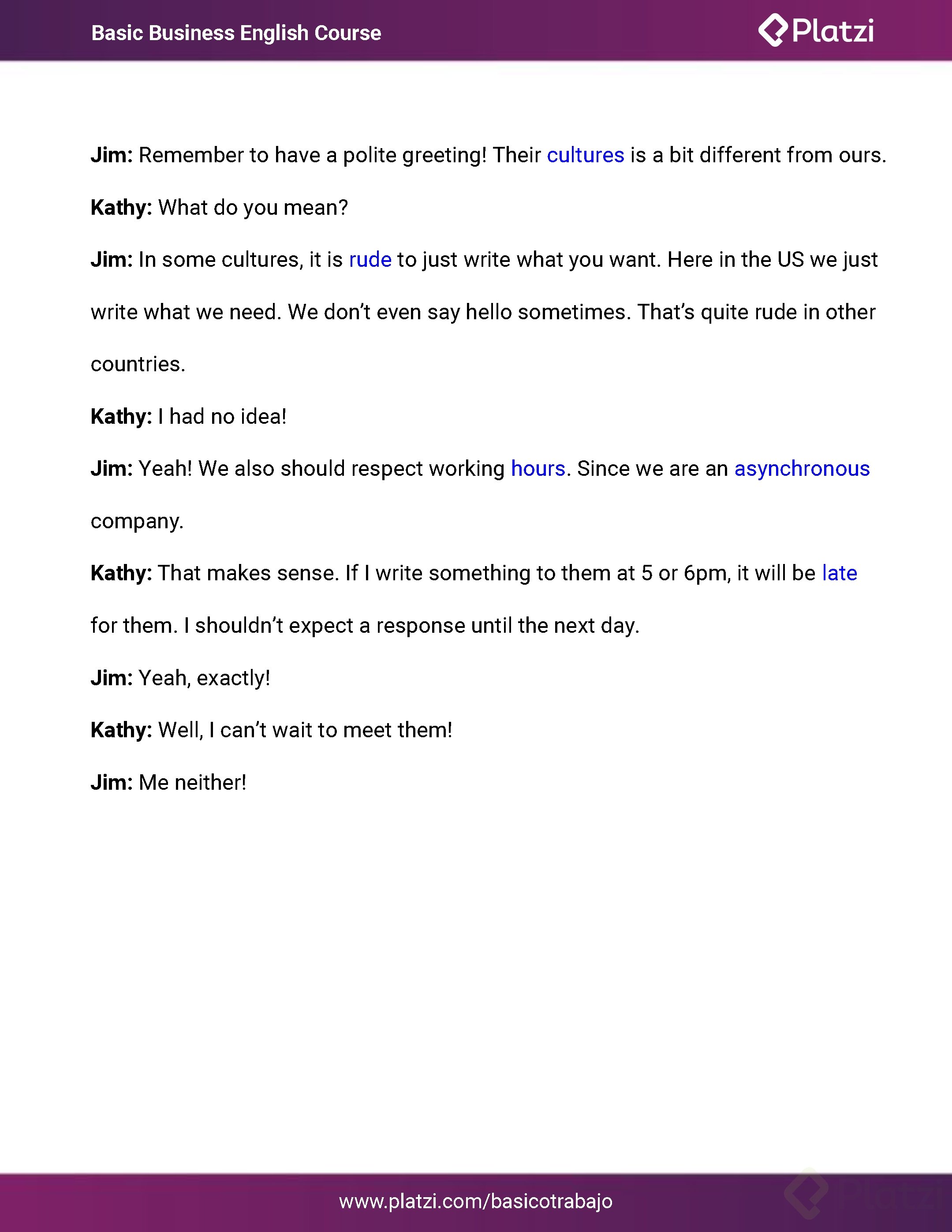 - Saludo formal: En culturas fuera de Estados Unidos, es más común iniciar correos con saludos formales, en vez de ir directamente al grano.