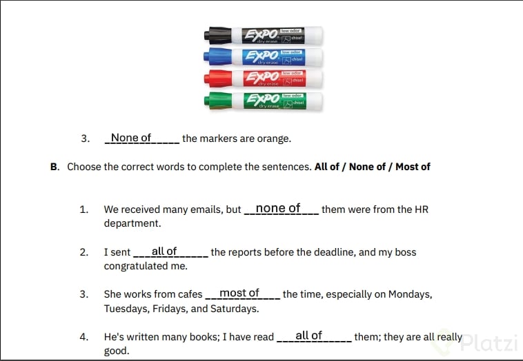 Uso de "All of", "None of" y "Most of" en Inglés