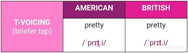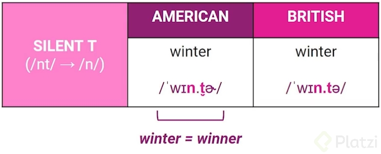 - Voz T: La palabra better tiene una voz T común en el acento americano.