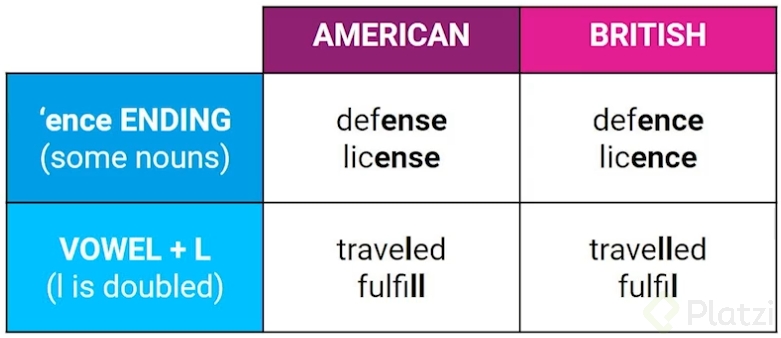 En contraste, palabras como "fulfill" tienen dos Ls en americano y una en británico: fulfil.