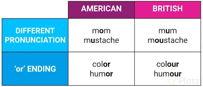En inglés británico es frecuente encontrar palabras con terminaciones como -our, mientras que en inglés americano se suele usar -or. Por ejemplo: