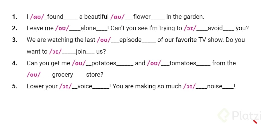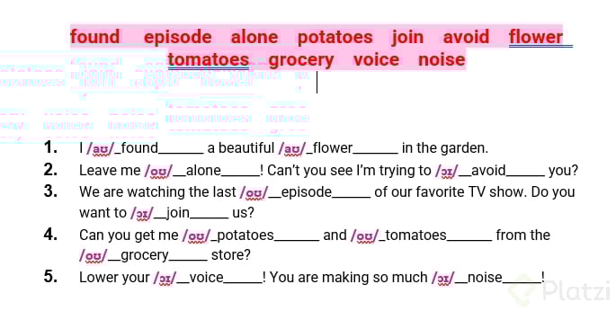 La clave para dominar los diptongos es la práctica constante. Intenta completar oraciones con palabras que contengan los diptongos dados como found, episode, coin, y más. Debes grabarte leyendo estas frases en voz alta y reflexionar sobre qué áreas necesitas mejorar.