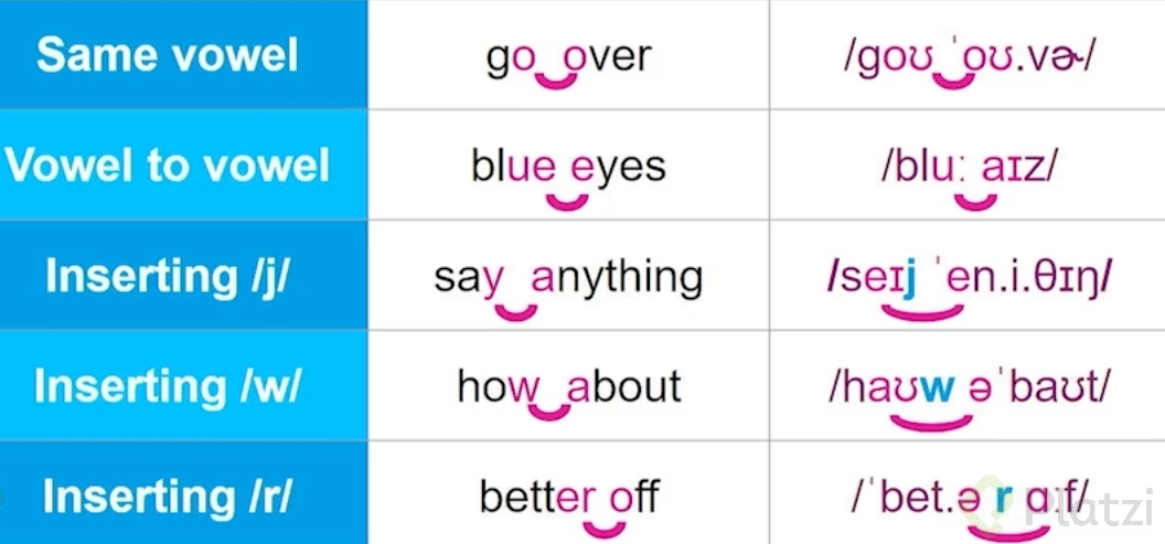 - Uso del sonido /j/: Como en "say anything" (decir cualquier cosa), el sonido /j/ suaviza la conexión.