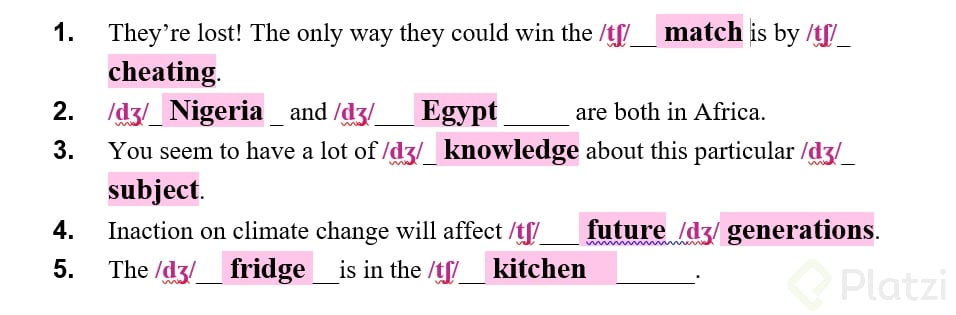 - "Nuestro equipo favorito ganó el championship" (campeonato) con el sonido inicial /tʃ/.