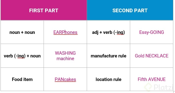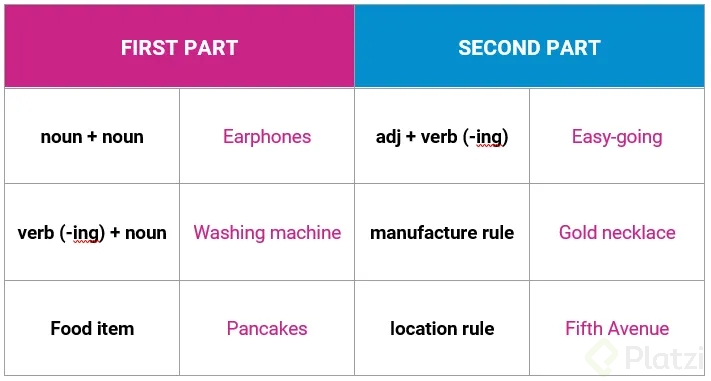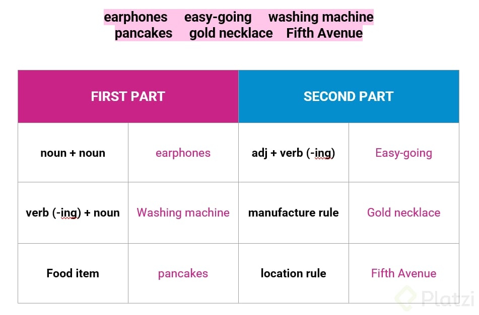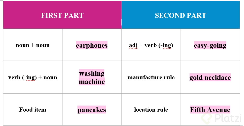 - Verbo en ING + sustantivo: Ejemplo, piscina.