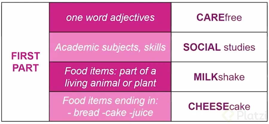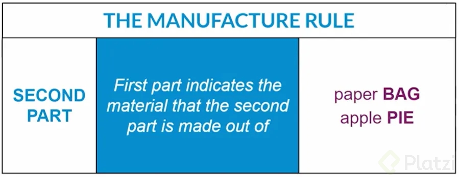 ¿Cómo aplican las reglas de material y ubicación en las palabras compuestas?