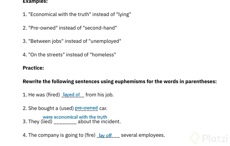 Los adjetivos pueden ser bruscos y, a menudo, los eufemismos sostienen las conversaciones más gentiles y respetuosas. He aquí algunos ejemplos: