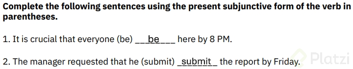 Keep practicing with worksheets and real-world examples. The more you see these patterns, the more natural they will feel. What subjunctive sentence do you find most challenging to use correctly?