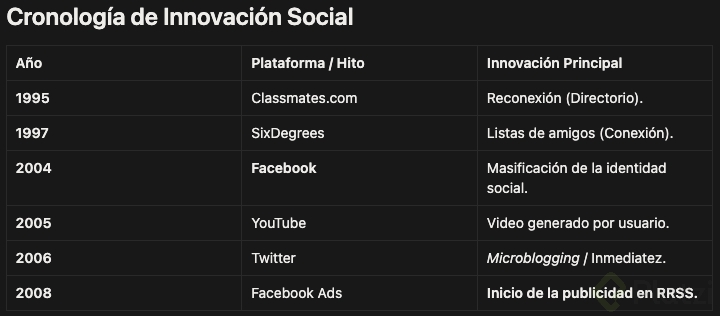 Es el auge del uso masivo de internet y los teléfonos móviles para generar interacción con la gente. Según un artículo de Deloitte en 2014, el inicio de las redes se remonta a 1995 con la creación del sitio web classmates.com, con el fin de que la gente pudiera tener contacto con antiguos compañeros del colegio o la universidad.