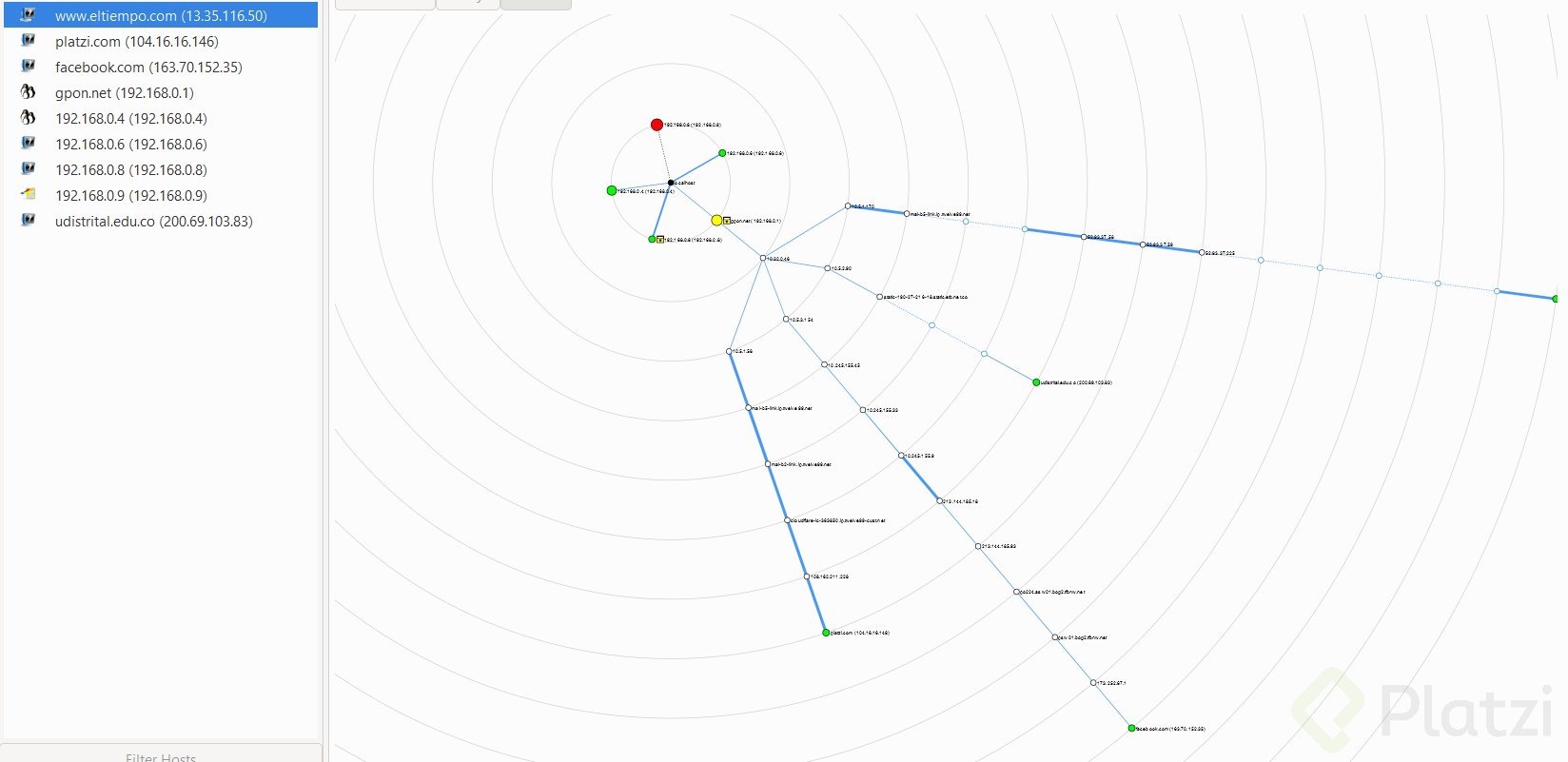 Traceroute permite ver por dónde pasa un paquete antes de llegar a su destino final (no es una conexión directa, pasa por distintos dispositivos).
